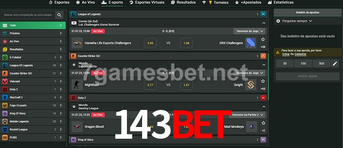 O 143bet oferece uma grande seleção de opções de apostas em e-sports com probabilidades competitivas